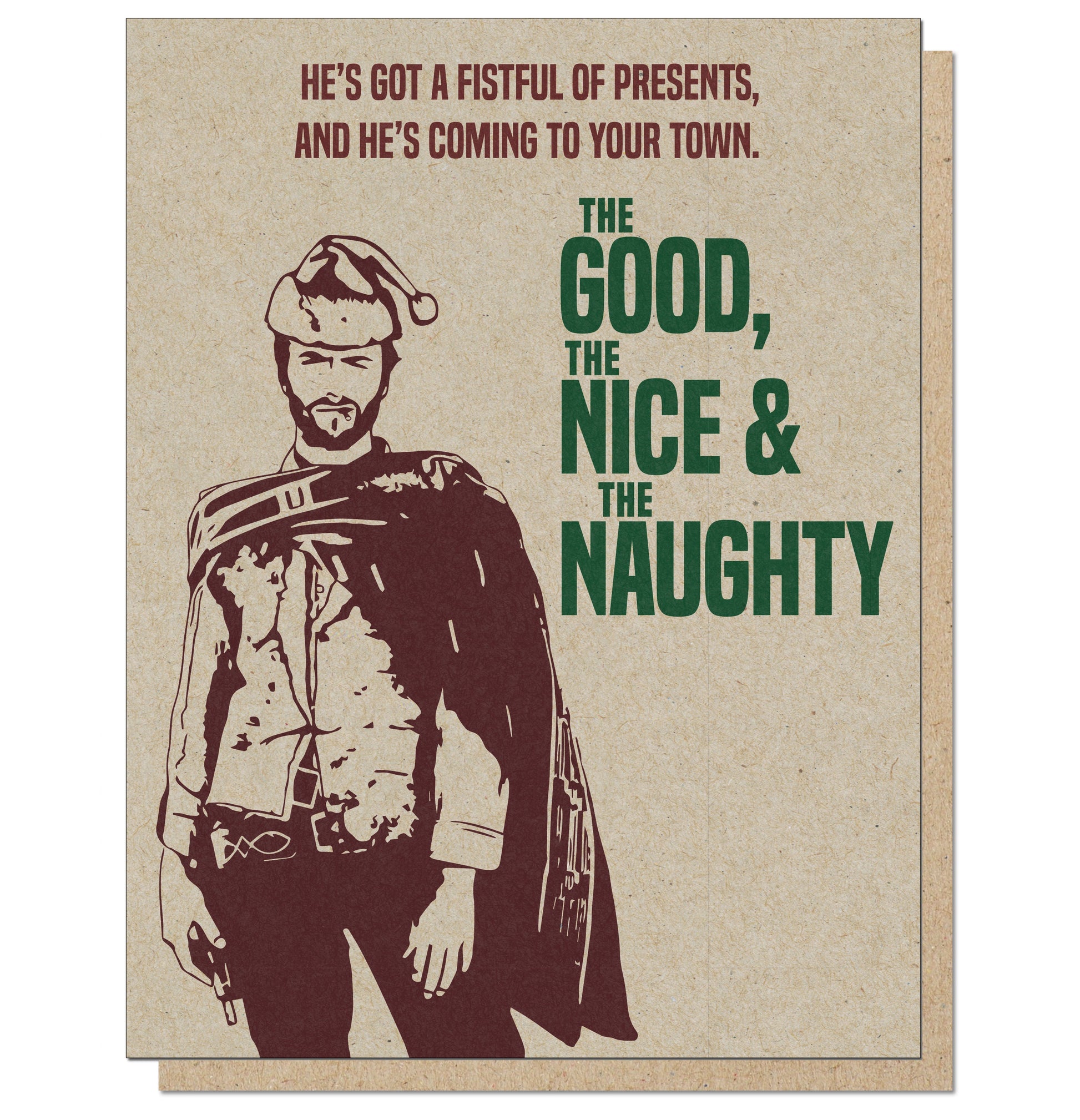 "He's got a Fistful of Presents, and He's coming to your town. The Good, The Nice & The Naughty."